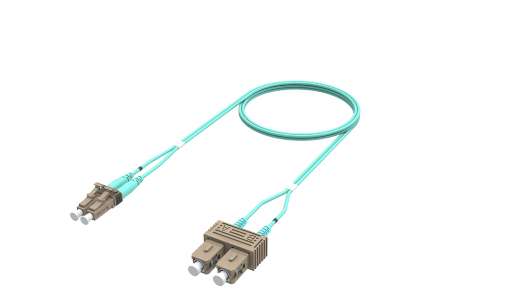 – Fiber Optic Patch Cord, OM3, LC to SC duplex, 1.8 mm LSZH & OFNR, 3 m, aqua.