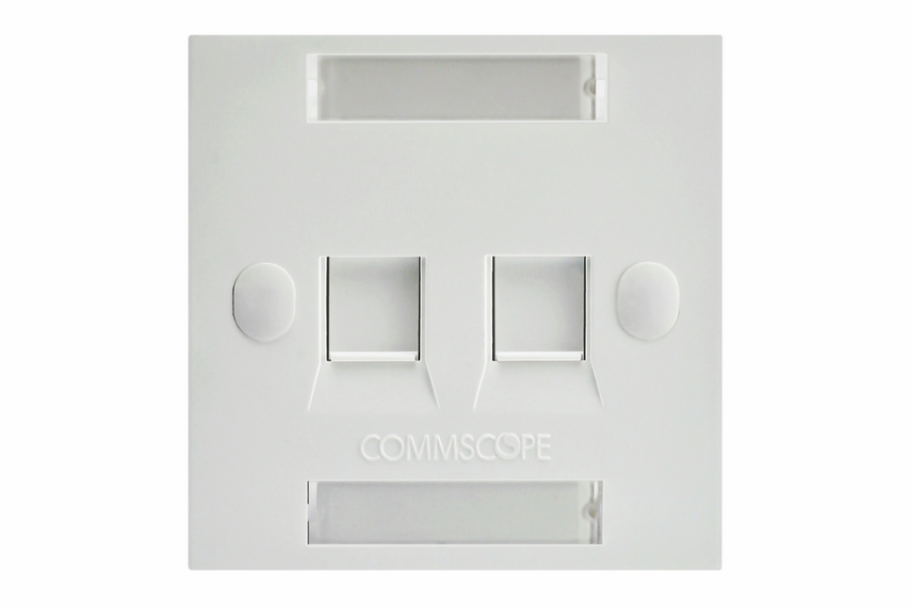 COMMSCOPE BS Style Faceplate, 2-Port Shuttered, w/Label & Icon, White (FACEPLATE KIT, 1PORT, 110 CONNECT, BS, WHITE)